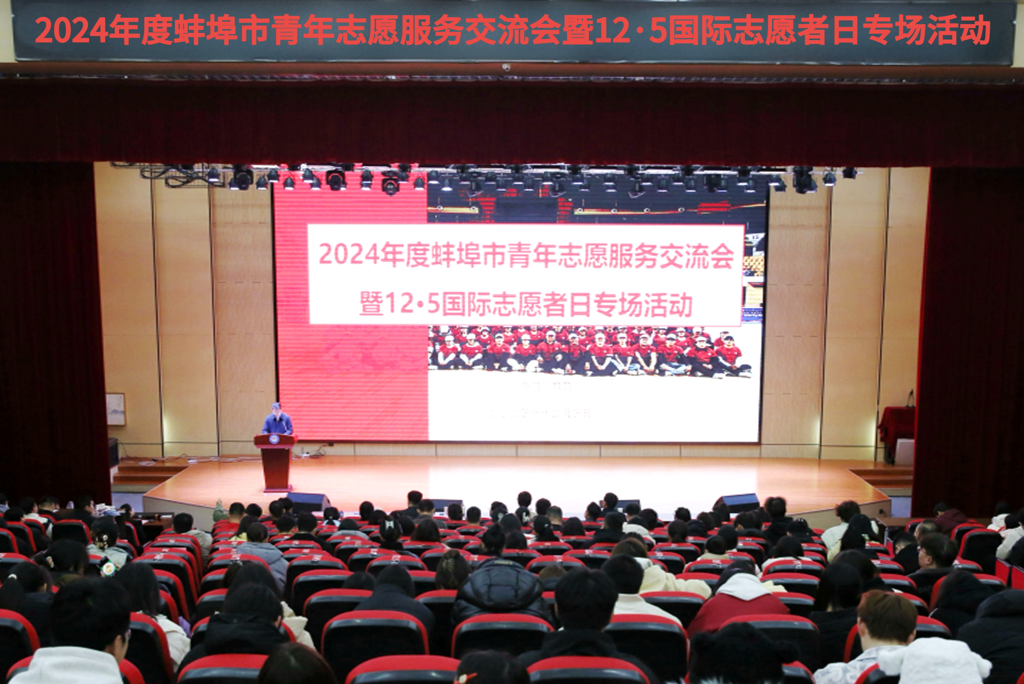 本网讯 12月4日下午,由学院承办的2024年度蚌埠市青年志愿者服务交流会暨“12·5国际志愿者日”专场活动在实验楼学术报告厅顺利召开。市委常委、统战部部长张晓静出席活动并讲话,院党委书记王国武参加并致辞,院党委委员、纪委书记蔡学良出席活动,团市委书记张亮主持会议并作2024年度青年志愿服务工作总结。