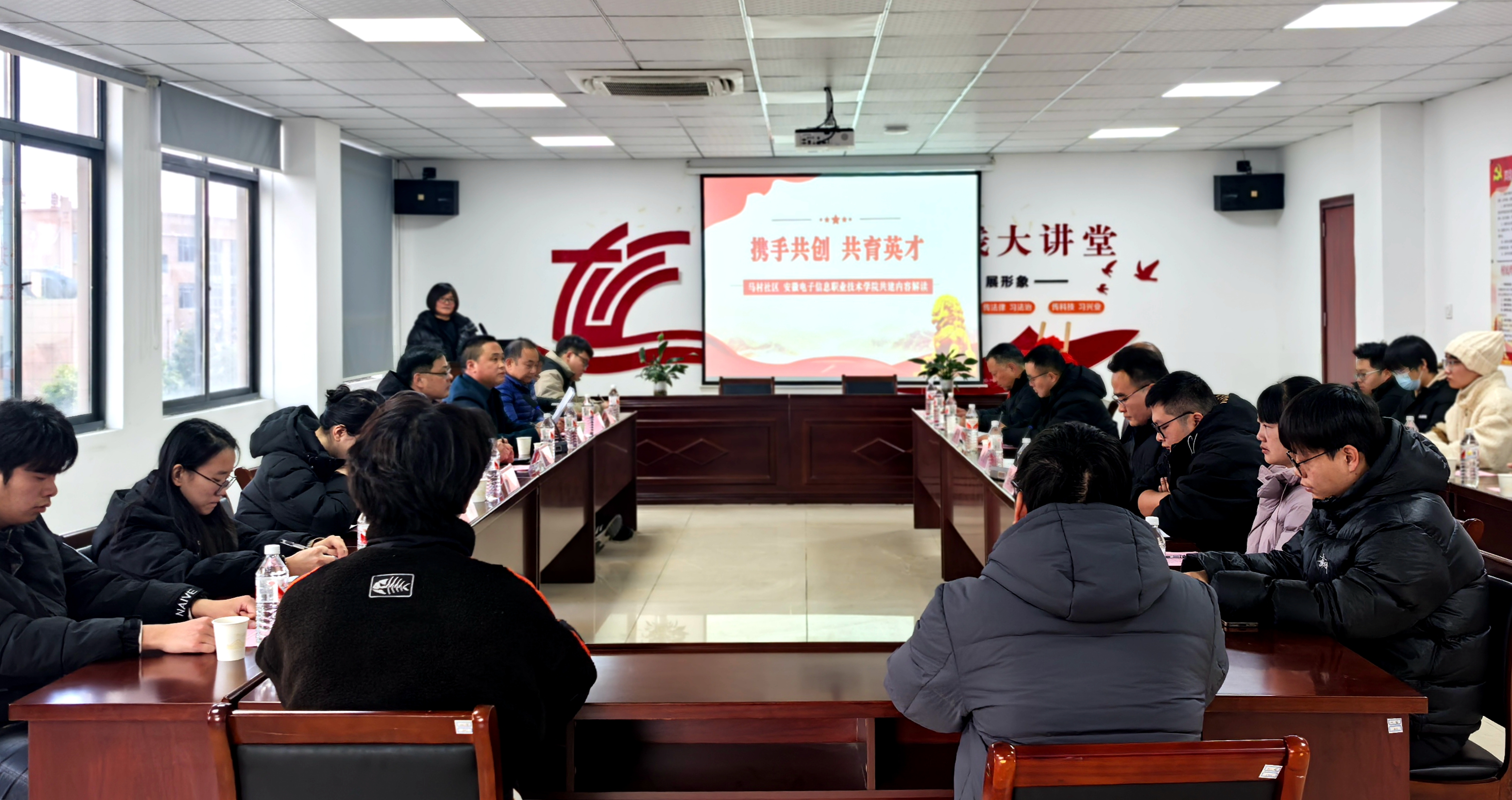 本网讯 为深入学习贯彻习近平新时代中国特色社会主义思想,探索“党建+团建+社区”大学生思政教育的校地合作新模式,引导青年学生们在参与社会服务实践中向人民学习、向基层学习,打造高校实践育人新阵地,12月18日,电子工程学院党总支书记、院长方庆山带队赴马村社区开展党建共建和大学生社区实践基地揭牌活动,电子工程学院教师第二党支部和学生党支部党员代表及电子爱好者协会学生代表参加。