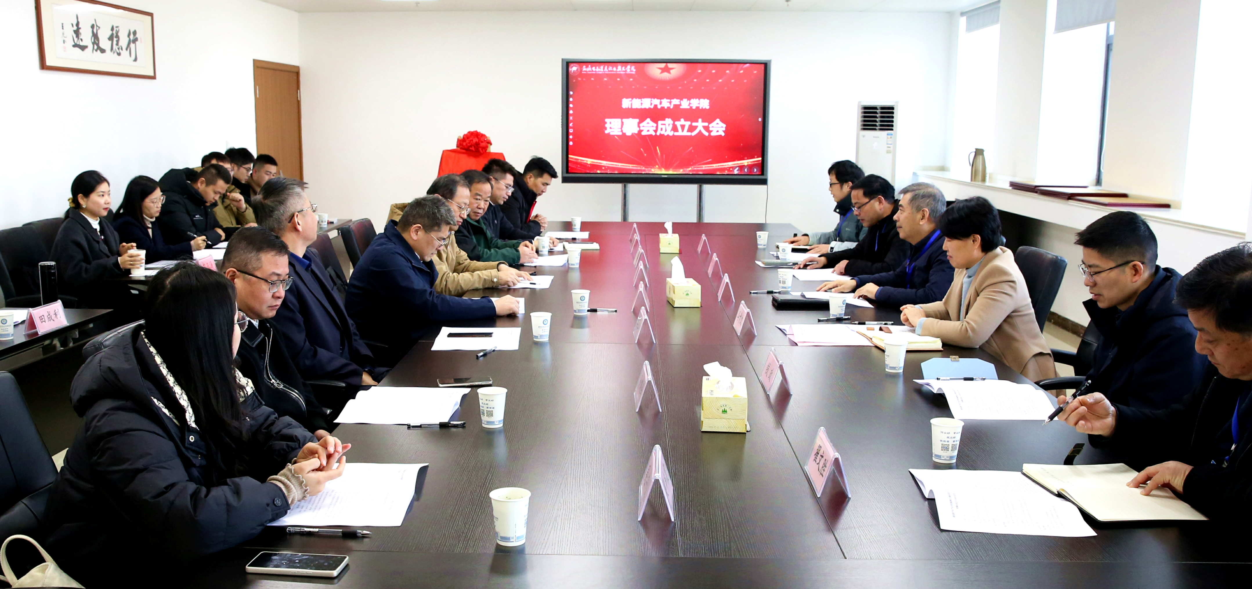 会上,通过了新能源汽车产业学院理事会组织机构名单,理事会实行“1+1+N”模式,由必赢766net手机版和安徽江淮汽车集团股份有限公司共同担任理事长单位,蚌埠市双环电子集团股份有限公司、蚌埠市汽车服务行业协会、奇瑞新能源汽车股份有限公司、安徽威灵汽车部件有限公司担任副理事长单位,其他多家企业担任理事单位。同时,新能源汽车产业学院下设6个工作组,负责具体建设任务的推进。各理事单位代表共同讨论并一致通过了《新能源汽车产业学院章程》《新能源汽车产业学院建设方案》和《新能源汽车产业学院建设工作组》。
