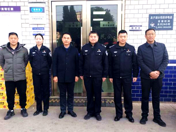 在龙湖派出所,冯兴祥与派出所所长黄坤坤等亲切交流,感谢龙湖派出所为学院师生提供完善的业务支持和管理服务,提升了学院的安全管理水平。黄坤坤对学院的慰问和对派出所工作的大力支持表示感谢他,表示将继续维护大学城良好社会秩序,更好为学院师生服务。