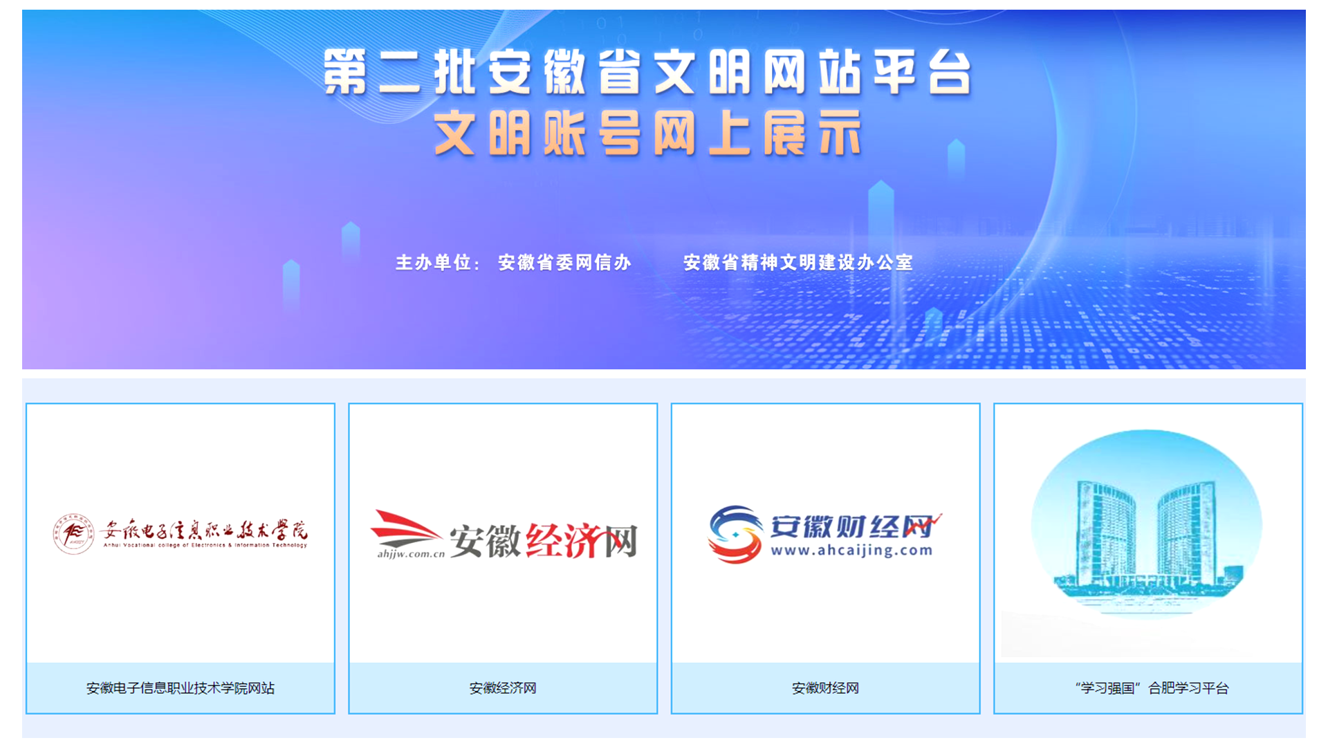 本网讯 近日,安徽省委网信办、省精神文明办公室公布第二批全省文明网站平台、文明账号评选名单,学院荣获安徽省文明网站平台称号。这一荣誉是对我院网络文化阵地建设、网络文明传播及信息化服务水平的充分肯定,彰显了学院在新时代背景下推进数字化校园建设的显著成效。