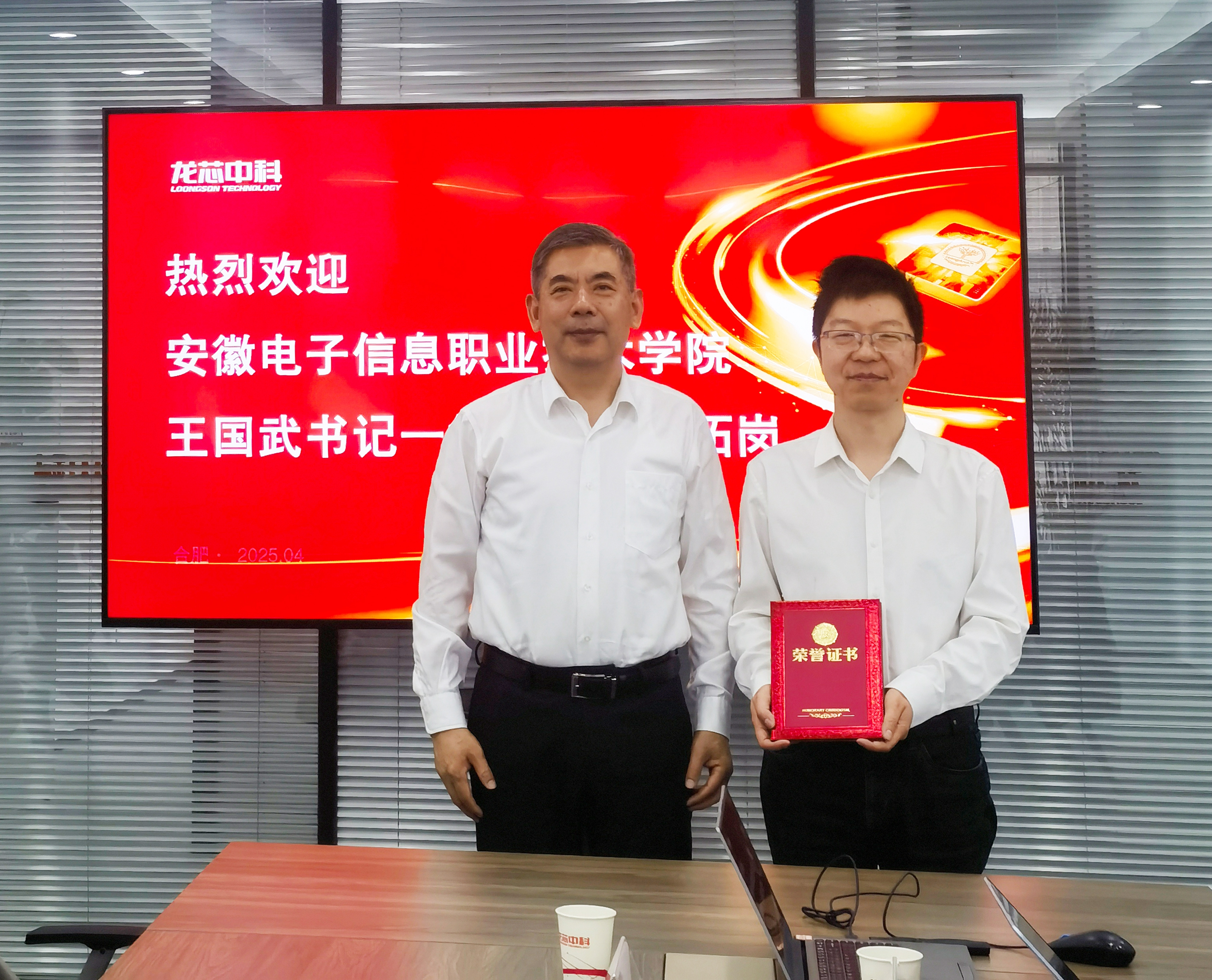 在走访龙芯中科(合肥)技术有限公司期间,王国武为总经理彭飞先生颁发了学院省级产业教授聘任证书。(文/图:毕好昌 预审:朱正月 审核:王建)