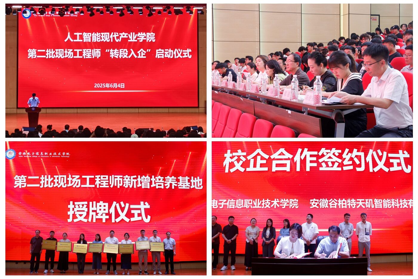本网讯       为持续深化产教融合、校企合作,落实教育部等五部门《关于实施职业教育现场工程师专项培养计划的通知》精神,6月4日下午,人工智能现代产业学院第二批现场工程师“转段入企”启动仪式在实验楼学术报告厅隆重举行。软件工程学院党政负责人、产业学院14家培养基地单位代表、学院全体教师及相关专业学生代表出席活动,共同见证这一重要时刻。仪式由人工智能现代产业学院副院长胡六四主持。