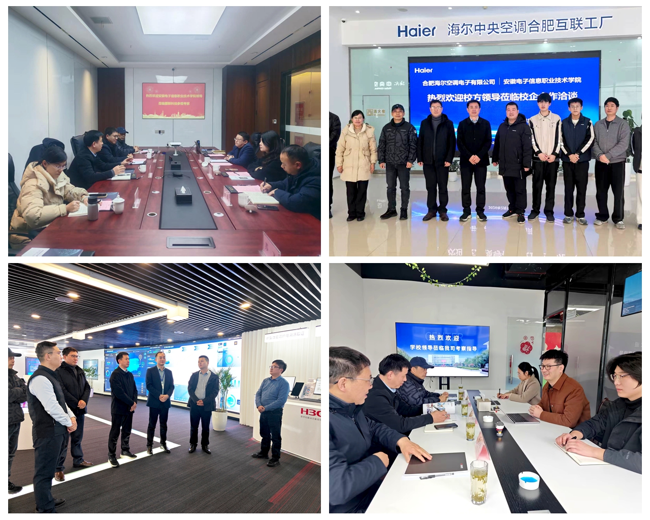 2月5日上午,调研组首站走访合肥领智物联科技有限公司、合肥海尔空调电子有限公司。在交流座谈中,校企双方围绕校企协同育人模式优化、实习就业渠道拓宽、人才培养标准与企业岗位需求精准对接等内容深入交换意见,达成多项合作共识,为后续合作走深走实筑牢根基。座谈间隙,吴合金与在企业实习就业的学生亲切交谈,仔细询问其岗位适应情况与职业发展规划,鼓励学生珍惜实习就业机会,将专业知识与岗位实践深度结合,在实践中锤炼过硬本领、实现成长成才;同时叮嘱企业用心做好学生实习就业期间的培养指导与服务保障工作,为学生成长发展保驾护航。