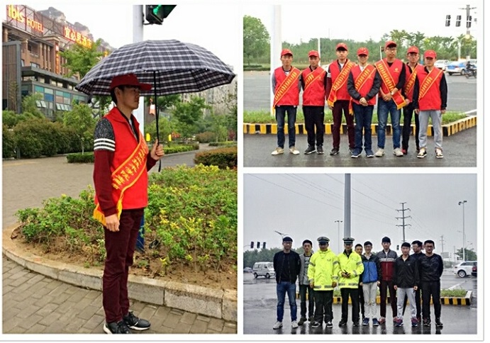 活动现场,志愿者们头戴志愿者服务帽,肩披学院丝带,协助交警针对交通路口非机动车和行人闯红灯、不按道行驶、无序通行等不文明行为进行劝导。活动过程中,尽管下着小雨,但是志愿者们对老弱残者或问路的行人都会提供热情的帮助,为他们解忧排难。一句句您好,我们是文明交通劝导员,请您自觉遵守交通法规,谢谢您的合作。深深的印在了每一位市民的心中,大家都以微笑来回报志愿者的服务。