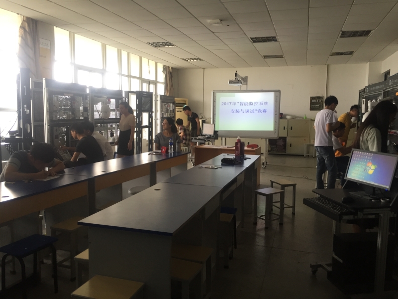 赛场上,选手们热情饱满,裁判公平公正。选手们按照竞赛任务书的要求,分工协作,紧张有序地完成了系统结构图设计、线路敷设、参数设置与调试、故障诊断与排除等工作任务。本次竞赛有效地检验了学生对典型智能监控系统的设计、安装与工程实施能力、编程调试与维护能力。