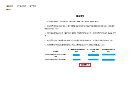 4、选择“确认信息”,下拉到底部点击“缴纳考试费”,选择相应的缴费方式;如图3所示: