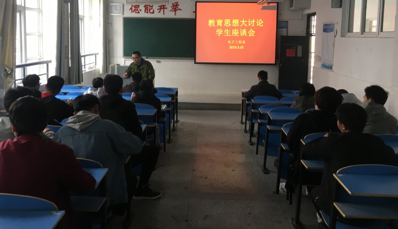 本网讯 为了进一步了解和掌握学生的思想动态和日常教学中存在的问题,3月25日下午电子工程系在2202教室举办了一场教育思想大讨论学生座谈会,系副主任刘涛、部分教师代表及各班级学生代表参加了本次座谈会。
