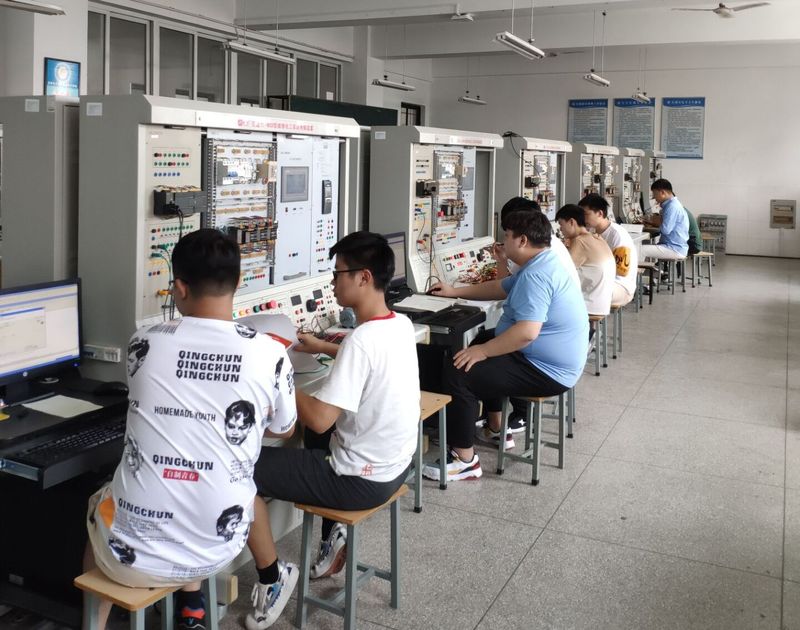 本网讯 6月12日下午,“PLC控制系统安装与调试”竞赛在学院维修电工实训室圆满落幕,来自电子工程系和机电工程系的电子信息工程技术、应用电子技术、机电一体化等专业的52名选手分别参加西门子PLC组和三菱PLC组的角逐,最后有8支参赛队脱颖而出,分别获得西门子PLC组和三菱PLC组一、二、三等奖。