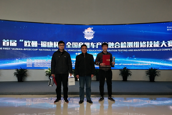 本网讯 11月27日,首届“欧曼-福康杯”全国商用车产教融合检测维修技能大赛在北京福田戴姆勒超级卡车体验中心举行,电子工程系汽车检测与维修技术专业孙诚、高贤两位同学组成的代表队获得团体三等奖,孙诚同学还以优异的临场发挥,荣获个人三等奖。