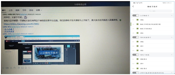 如何有效的践行“停课不停教、停课不停学”?应用电子技术专业骨干教师余蓓敏与电信164班级学生一起以《微电子技术》课程的教学,共同演绎了如何开展“线上教”与“线上学”。