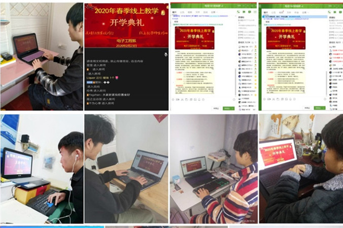 2月24日,电子工程系新学期线上教学正式拉开帷幕。上午第一节课,四个班级共156名学生参加了线上教学,任课教师早早就登录平台准备授课。为帮助学生尽快进入学习状态,在课堂教学开始前,任课教师还教导学生要珍惜大好时光,严格遵守作息时间和课表要求,在做好疫情防控的同时,高质量完成各项学习任务。上课中,针对集中访问引发的教学平台拥堵,任课教师及时启动备用方案,灵活运用虎牙直播、腾讯课堂和QQ群视频推送等形式,采取线上授课、视频讲解和个性化作业等多种举措,确保线上教学取得实效。