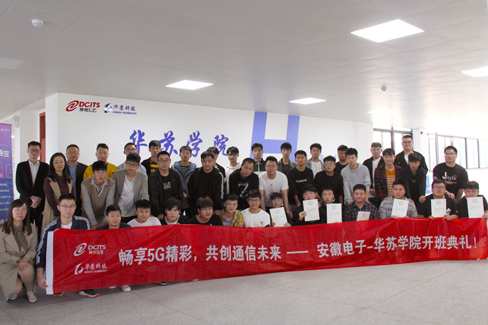本网讯 10月9日下午,学院首届华苏学院通信人才培训班在实训楼华苏学院培训基地开班,学院党委委员、副院长姚卿佐,南京华苏科技有限公司副总经理刘清华出席开班典礼,华苏科技人事行政总监李洪、教育事业部总经理赵雷雷、学院电子工程系和软件学院负责人及首届华苏学院通信人才培训班全体学员等参加活动,华苏科技人力资源部主管何盼主持典礼。