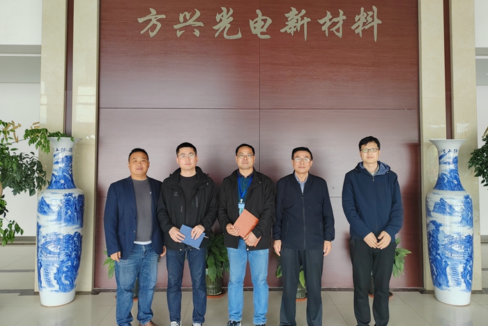随后,调研组一行前往安徽方兴光电新材料科技有限公司,公司人力资源部部长汪岫接待了调研组一行。在座谈会上,方庆山介绍了电子工程学院的专业建设、师资队伍培养和学生实习就业等工作,详细询问了企业的实习生待遇、住宿、工作时间和工作岗位等情况。汪岫介绍了企业的基本情况和用人需求,希望双方在技术研发、学生实习就业等方面开展全方位合作,实现双赢发展。