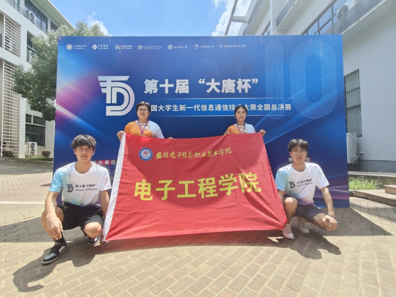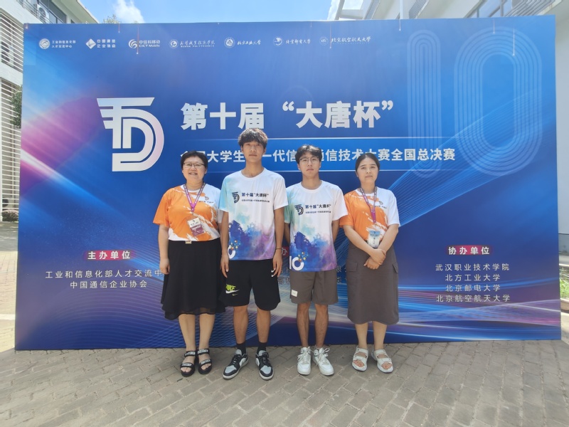 本网讯 近日,第十届“大唐杯”全国大学生新一代信息通信技术大赛(高职组)全国总决赛在武汉职业技术学院落下帷幕,我院21级现代通信技术专业黄玉辉、王铖炜两位同学代表学校参赛并获得二等奖的好成绩,蔡凤丽、朱伶俐两位指导教师获“优秀指导教师奖”。
