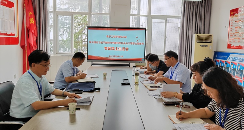 石象斌对本次专题民主生活会进行了点评,他认为电子工程学院总支委员会会前准备充分、规范,班子及班子成员的个人对照检查材料符合要求,个人“画像”准确,批评与自我批评诚恳,达到“红脸出汗”的目的。并对下一步的工作提出要求,要进一步利用好主题教育的学习成果,推进学院事业的高质量发展,同时要认真梳理本次专题民主生活会查摆出来的问题,抓好整改落实,聚焦“学思想、强党性、重实践、建新功”总要求,推进各项事业不断取得佳绩。聂小明在会上对会议材料的规范性进行了指导,并对电子工程学院如何做好新进人员的培养谈了自己的看法。