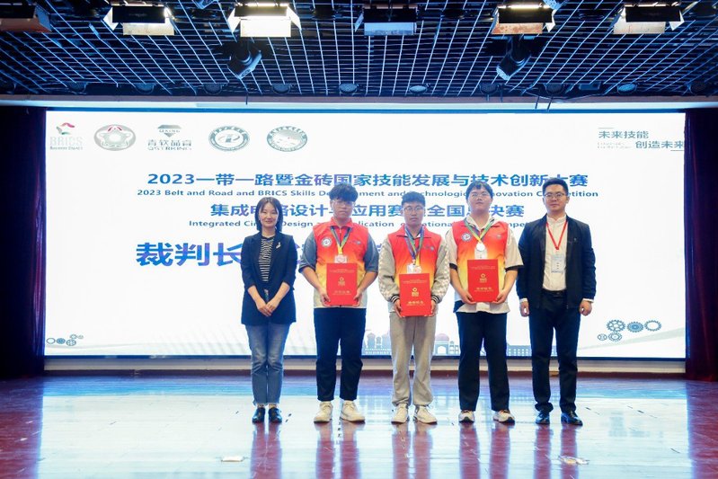 本网讯 近日,2023一带一路暨金砖国家技能发展与技术创新大赛集成电路工程技术应用全国决赛在湖北工业大学和武汉交通职业技术学院举办。来自全国200多所高校的近千位学子齐聚武汉,逐梦赛场,我院学子孙逍遥、马永其、张杭和邵涵斌、谢景昕、尹大鹏两支代表队均斩获了全国三等奖。