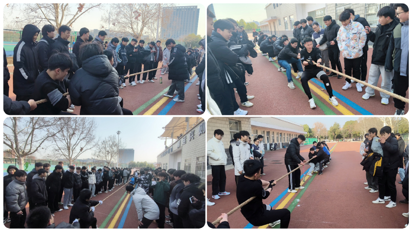 本网讯 为进一步丰富校园文化生活,培养学生的团队合作能力,增强团队凝聚力和集体荣誉感,展现电院学子的青春风采。12月20日,电子工程学院组织学生在西操场进行拔河比赛。