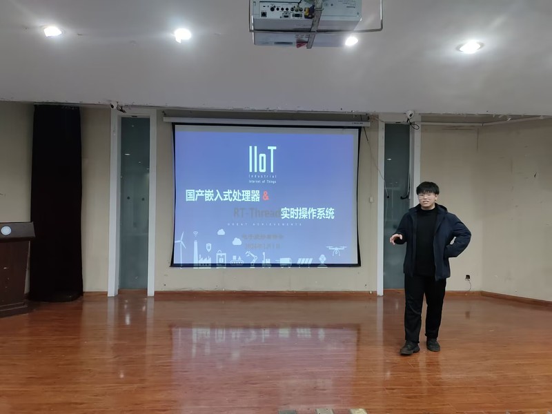 本网讯 2024年1月1日,新年伊始,电子爱好者协会在2002C教室开展了一场以“立志成为国产替代的践行者”为主题的宣讲活动,向同学们宣传国产嵌入式处理器、国产实时操作系统和国产EDA软件等在中国智能制造中新贡献和新亮点,引导同学们树立自强不息、奋力攀登高峰的创新精神。宣讲活动由电子爱好者协会会长、电信221班谢景昕主持,协会指导教师张留忠及全体电子爱好者协会成员参加。