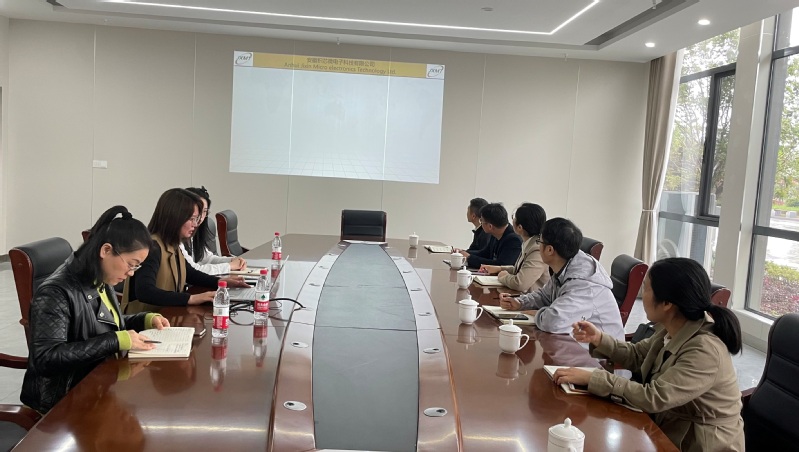 随后,调研组一行到达安徽积芯微电子科技有限公司。座谈会上,安徽积芯微电子科技有限公司人力行政总监詹翠萍通过企业做什么、企业的优势、员工能得到什么、企业发展愿景四方面详细介绍了企业的基本情况。李征介绍了电子工程学院的专业设置、人才培养、校企合作的基本情况,重点介绍了2024届毕业生就业情况和2025届毕业生的岗位实习计划,提出校企共建集成电路技术专业,探索建立“厂中校”的愿景,实现教育链、人才链、创新链与产业链的有机衔接,助力技能安徽建设。随后校企双方就校企合作、毕业生岗位实习与就业等相关问题进行了深入的交流。