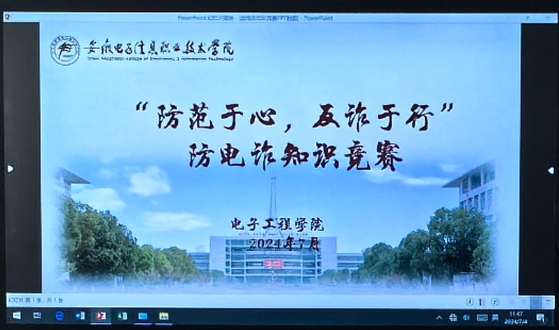 本网讯 为进一步提升我院学生防范电信诈骗的意识和能力,有效防范电信诈骗事件发生,切实保护学生的财产安全,在全院形成浓厚的防范电信网络诈骗宣传氛围,打造一个安全、稳定、和谐的校园环境,7月4日,电子工程学院举办了“防范于心,反诈于行”防电信诈骗知识竞赛,来自各专业各班遴选的38名学生参加了此次比赛。