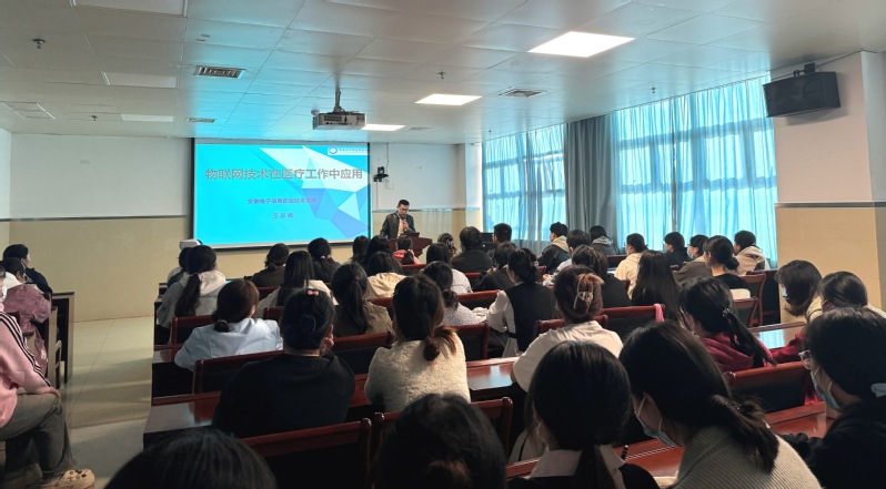 本网讯 20241025日下午,我院王志杨老师应邀为正在蚌埠医科大学第一附属医院实习的学员们开展了一场以“物联网技术在医疗工作中应用”为主题的专题科普讲座。蚌埠医科大学第一附属医院护理部主任陈永侠携实习学员共近150人参加。