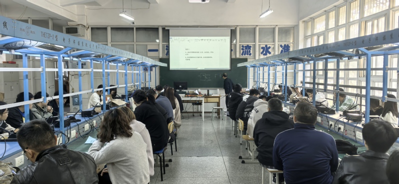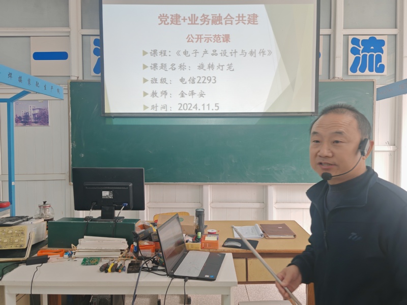 本网讯 11月5日,电子工程学院教师第二党支部结合公开示范课活动在1102实训室开展了一场别开生面的公开示范课,公开示范课由教师第二支部组织委员兼宣传委员金泽安老师主讲,电子工程学院党总支书记、院长方庆山、副院长李征、电子信息工程技术专业群教师、学校其他教学部门教师代表和电信2293班全体学生参加活动。