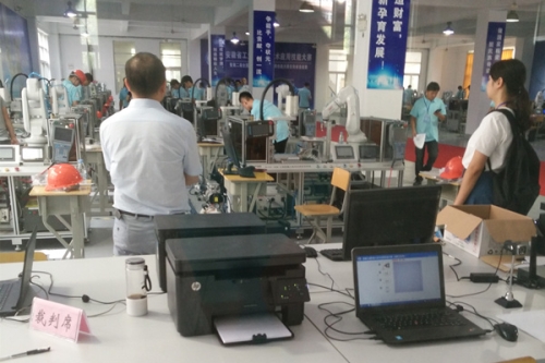 本网讯 8月17日,安徽省工业机器人技术应用技能大赛暨第二届全国工业机器人技术应用技能大赛安徽省选拔赛在六安技师学院拉开帷幕,院党委副书记、院长王国武应邀率队赶赴比赛现场,实地指导我院参赛选手并观摩了比赛过程。院党委委员、副院长姚卿佐,机电工程系副主任耿晓明及专业带头人李刚老师等陪同。
