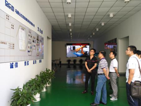 在马鞍山方宏自动化科技有限公司,石象斌一行在企业副总经理王飞的陪同下考察了生产现场,对企业工业机器人产品类型,机件加工、设备组装调试等各生产环节及岗位工作情况进行了了解。参观结束后双方进行了交流,石象斌介绍了学院在教学、学生实训、学科建设等方面的建设发展情况,并详细咨询和了解了企业在产品研发、市场供求、人才需求等方面的情况。在校企合作方面双方进行了研讨,均希望以后加强交流,在人才培养、生产性实训和校外实习等多方面开展合作,实现学校教学和企业发展的合作共赢。