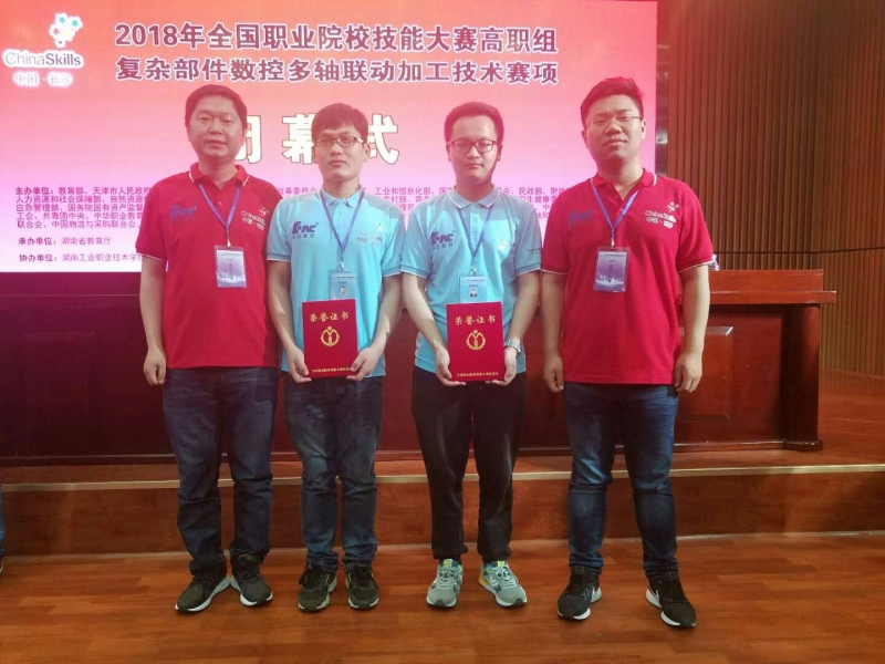 本网讯 5月14日至18日,2018年全国职业院校技能大赛复杂部件数控多轴联动加工技术赛项在湖南省长沙市隆重举行,经过各省市的层层选拔,共有51支代表队参加了该项目的角逐,我院数控技术专业的唐锦岩、江柏两名同学代表安徽省参加了该赛项的竞赛,获得三等奖。此前,在该项竞赛的省级竞赛中获得一等奖。