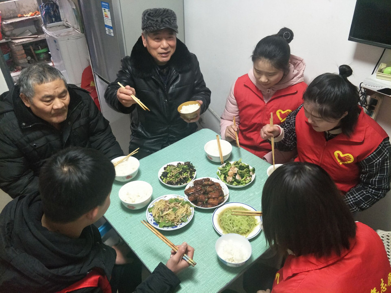 活动中,志愿者们为社区内的残疾老人整理被褥、清扫房间、擦扫门窗座椅,努力为老人们营造一个舒适的居住环境的同时,为老人们精心烹制出一桌健康又美味的饭菜。在饭后与老人们闲话家常时,了解老人们的生活状态与身体情况,劝导他们要注意身体,要秉持“低油低盐”与“多动动”的生活习惯,放宽心态,生活上遇到问题要及时与社区居委反应。老人们看到学生们如此真挚的关心自己的晚年生活,纷纷露出了笑脸。