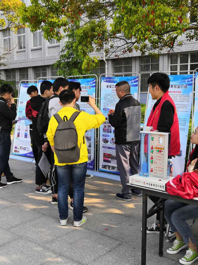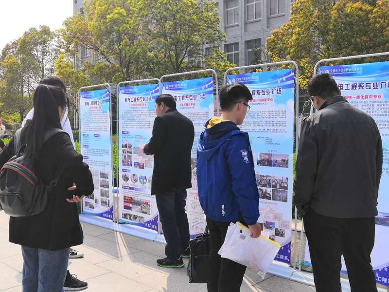 当天晴空万里,校园百花齐放。我系参加宣传的师生早早准备好了宣传及专业咨询准备。展台上各种学生作品吸引了现场很多学生及家长的目光。有自动化、机电专业的智能电梯模型、光伏专业的太阳能电动车、磨具专业的轧花机......这些由老师指导,学生动手完成的作品,展现了机电工程系学生工学交融、学以致用的实践能力。教师的耐心答疑使考生及家长进一步地了解相关专业及我院的办学情况,帮助考生选择专业提供参考。优秀毕业生的展示为考生提供了榜样的作用。