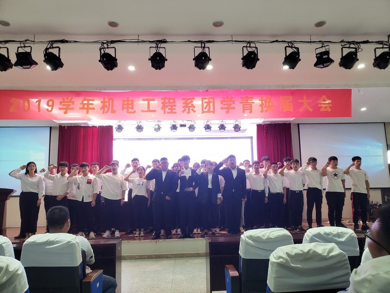 本网讯 时代在发展,青春在飞扬。前进的步伐在永不停息的向前奔跑着。承前启后,继往开来,必赢766net手机版机电工程系于2019年9月12日12:30在学术报告厅举办“2019届团学青换届大会”。参加本次活动的有团总支书罗东辰老师和优秀年轻辅导员王常青老师以及17、18级学生会干事和全体机电工程系19级新生。