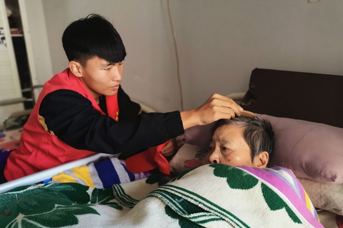 上午九点半,青年志愿者们到达幸福时光敬老院,在敬老院负责人的安排下,同学们分为若干个小组,各有分工。有的帮助老人整理内务;有的帮助老人修剪指甲,捶捶背;有的陪老人们拉家常、讲讲养生小知识;有的聆听老人讲过去的故事,感受当年老人们艰苦奋斗的历程。