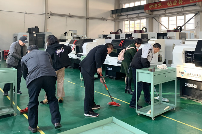 本网讯 11月22日,为做好“工匠大师”进校园的前期准备,结合正在开展的“不忘初心、牢记使命”主题教育,机电工程系组织教师党员和学生入党积极分子开展志愿服务主题党日活动,对“工匠大师”进校园分会场数控实训车间,进行卫生大清扫,规范整理实训车间物品摆放。