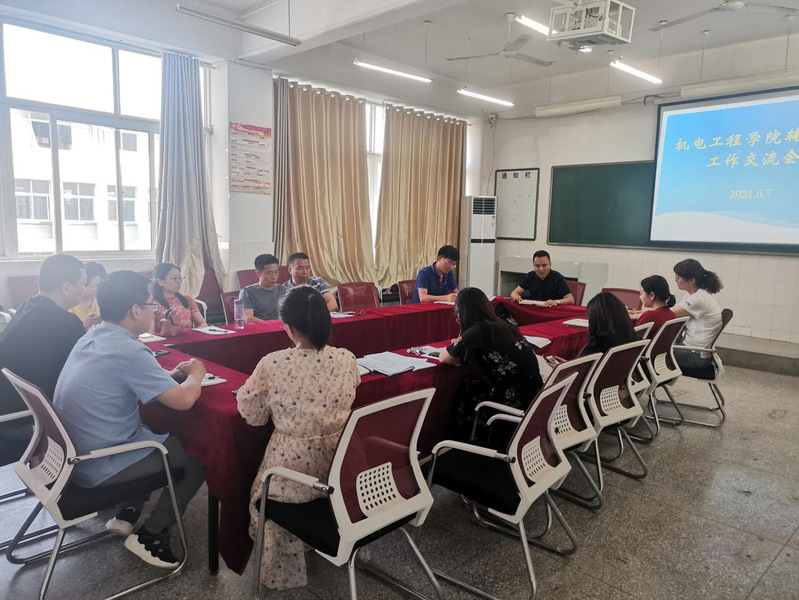 本网讯 为进一步完善学生管理工作方法,提高辅导员的业务能力,6月7日下午,机电工程学院在教四楼4401召开辅导员工作交流会,会议由党总支副书记书记赵世同主持。机电工程学院党政负责人郝志廷出席并讲话,机电工程学院全体辅导员参加了交流活动。