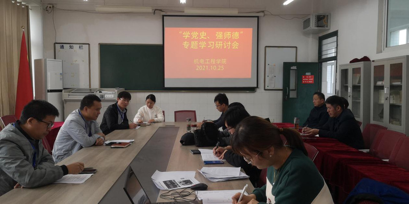 本网讯 为深入开展党史学习教育、扎实推进师德师风建设问题专项整治工作,10月25日,机电工程学院在4401会议室召开“学党史、强师德”专题学习研讨会。学院党员参加了会议,会议由教师党支部书记查正卫主持。