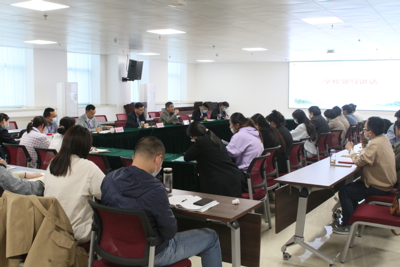 本网讯 4月27日下午,学院2022年第一期辅导员沙龙在实验楼1205会议室成功举办。学院党委书记石象斌,党委副书记、院长王国武出席活动并讲话,组织人事处、学生处和各二级学院相关负责人、全体专职辅导员参加活动,机电工程学院党总支副书记赵世同主持活动。