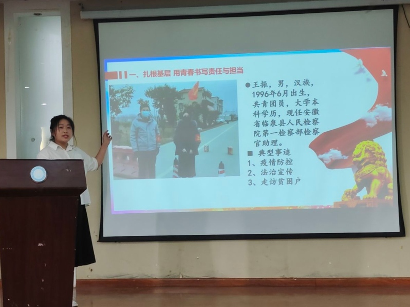 比赛中,二十多位参赛选手紧扣主题,用文字、图片、音乐、视频等多种呈现方式讲述了中国共青团的百年光辉历史。有人讲解了团歌背后的故事,有人普及了团徽、团旗等基础知识,有人介绍了当代青年们的觉醒征程……他们语言清晰,表达准确,逻辑性强,能够贴合青年特点,将政治思想转化为青年语言,将大道理转化为小道理,引起了全场观众的共鸣。最后,机电212班团支部李成波同学获得本次大赛一等奖,他所讲述的团课《共青团的成长之路》贴合时事热点、穿插团史故事,获得现场评委老师和观赛同学的一致好评。