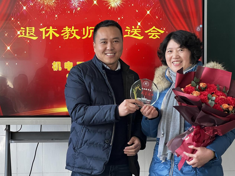 本网讯 2月15日下午,机电工程学院为退休教师朱钰铧举办了欢送会,会议由党总支书记、院长郝志廷主持,全体教职工参加。