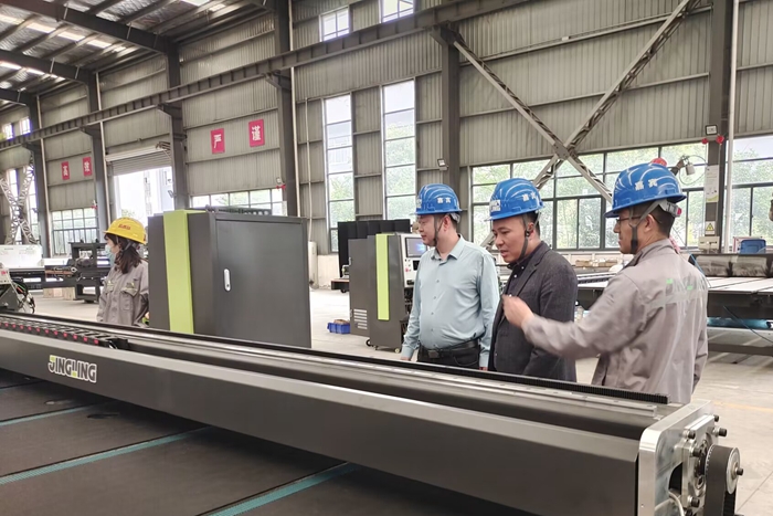 4月27日下午,调研组一行来到安徽精菱玻璃机械有限公司,董事长助理戚全利热情接待了调研组一行。在交流座谈会上,郝志廷向企业详细介绍学院相关专业的人才培养情况,并就校企合作开展技术开发和建立学生实习就业基地一事进行了交流。戚全利介绍了企业产品在玻璃切割机械行业和智能制造领域的应用情况,表达了企业在技术开发和学生实习就业方面深度合作的意愿。座谈会后,在企业人员的带领下,调研组实地参观了企业的生产车间和工作环境。