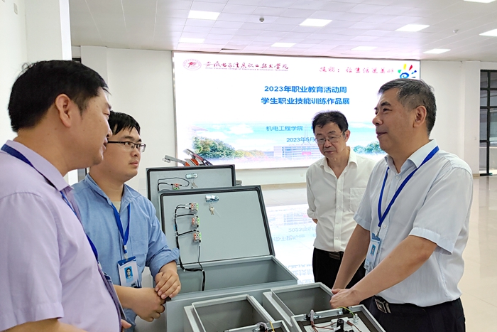在活动中,党委副书记、院长王国武来到展台前细致地参观了展示作品。他鼓励同学们努力学习科学文化知识,提升技能水平,展现出昂扬向上的精神风貌。他要求老师们要把劳动教育、工匠精神深度融入专业课教学体系,培育更多高素质技术技能型人才,更好地服务地方经济社会发展。