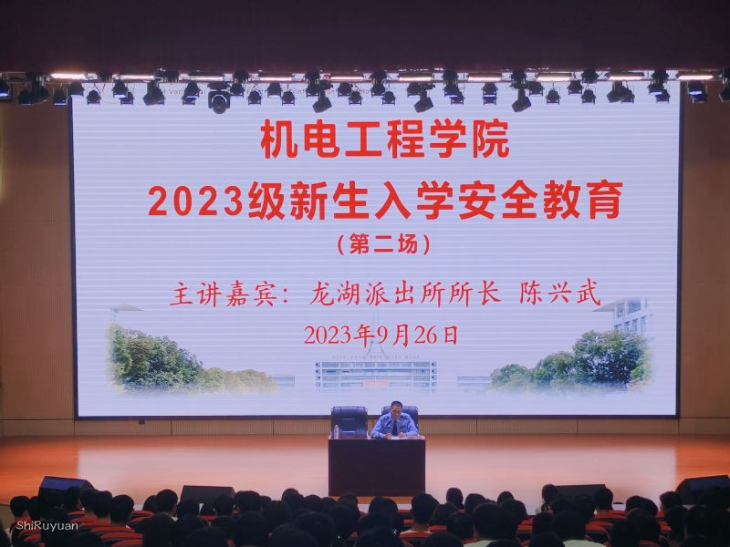本网讯 为了增强新同学安全防范意识,平安、顺利地度过美好的大学时光,9月26日晚,机电工程学院联合辖区内龙湖派出所为高职新生开展了专项入学安全教育。机电工程学院党总支副书记赵世同、全体新生辅导员参加此次教育活动。