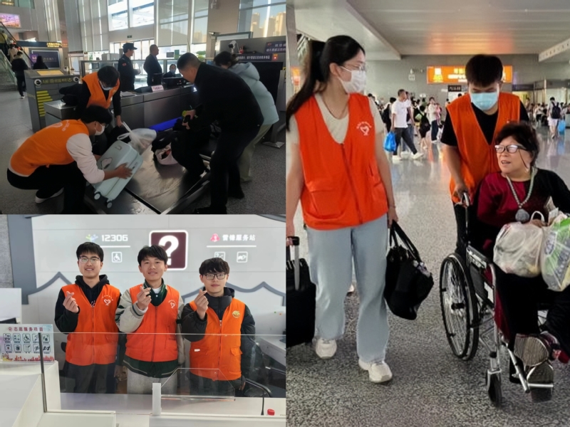 11月18日,身穿橙色服装的青年志愿者们忙碌的身影穿梭在蚌埠南站服务台、电梯口、安检区进站口、出站口、候车室等各个角落。他们积极主动地为旅客提供行路指引,热切地回答旅客的咨询,帮助特殊旅客搬运行李,确保旅客有序、平安、温馨出行。来自城轨运营222班的王思颖同学说道:“今天我们帮助了很多行动不便的特殊乘客,帮助他们购票,取票,让他们能顺利踏上返乡的旅程,尽己所能为社会作贡献,是一件非常幸福、有意义的事情。”
