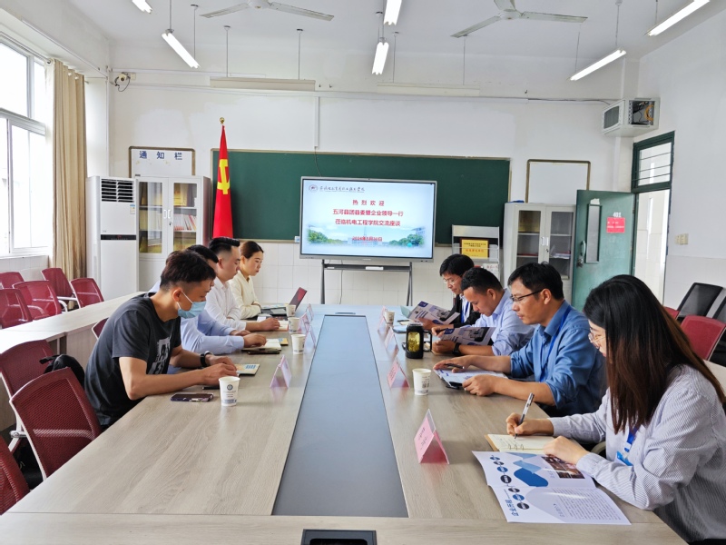 本网讯 5月30日,五河县团县委副书记凌瑞志、安徽佰易智能精机制造有限公司经理刘宗峰、五河县淮香楼品牌管理有限公司总经理凌大磊等一行到机电工程学院开展校企合作工作交流。机电工程学院党总支书记、院长郝志廷,经济管理学院院长项西国,机电工程学院副书记赵世同等出席本次交流会。