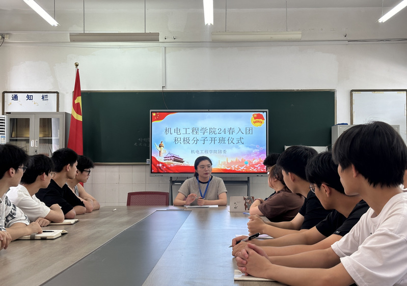 本网讯 为深入贯彻落实党的二十大精神和习近平总书记对共青团工作系列重要指示精神,着力加强团的组织建设,切实抓好团前教育,有效提高入团积极分子的政治理论素养,增强团组织的凝聚力。6月14日中午,机电工程学院团委于4401成功举办2024年春季团课开班仪式。开班仪式由团委老师蔡琦主讲。