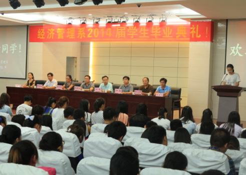 本网讯 7月7日,经济管理系在信息楼一楼报告厅举行欢送2014届毕业生毕业典礼。经管系党政领导、教研室主任和全体新生辅导员出席了典礼。