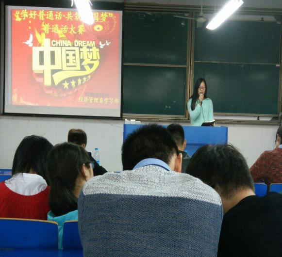 本网讯 2015年11月4日经济管理系学习部,开展了以“学好普通话、共筑中国梦“为主题的普通话大赛。