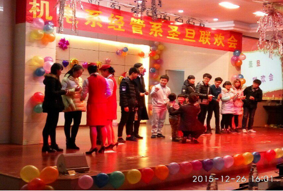 本网讯 2015年12月26日下午为祝贺圣诞并迎接元旦的到来,经管系青年志愿者协会与机电系青年志愿者协会联谊在学校学术报告厅举办了此次双旦晚会。此次联谊的目的是为了充分展示我系青协学生的风采和活力,增进我系青协同学与机电系青协同学之间的友谊,促进共同发展,为以后的交流合作奠定基础。本次晚会邀请了经管系和机电系的学生会干部及团总支委员前来观看演出。大家欢聚一堂,其乐融融,共同享受这美好时刻。