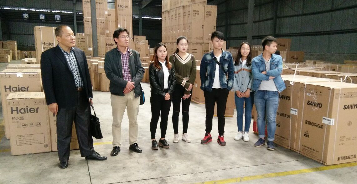 本网讯 根据校企合作共建协议物流管理151、152班学生分期分批到海尔配送中心进行仓储与配送课程顶岗实习。首批6名同学在管理教研室主任陈克军和物流管理专业教师赵世同的带领下,于2016年10月9日,正式奔赴位于怀远工业园的海尔配送中心(我院校外实践教育基地安徽鸿源物流有限公司),开始为期2周的课程顶岗实习。